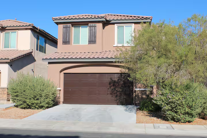 This modern rustic-style two-story home in Las Vegas, located off Blue Rainbow, offers the perfect blend of contemporary and rustic charm. This stunning residence features three spacious bedrooms, providing plenty of room for comfort and privacy, along with three well-designed bathrooms that combine convenience and functionality.